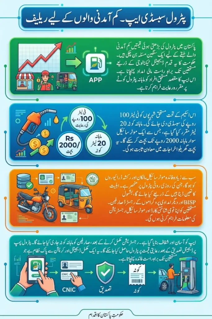 Petrol Subsidy App Petrol prices in Pakistan have been rising steadily, and for millions of people, this is no longer just an economic issue but a daily survival challenge. From small shopkeepers to delivery riders and rickshaw drivers, everyone is feeling the pressure. A significant portion of monthly income is now spent on fuel, leaving very little for other household needs. In such conditions, the government’s move to introduce a targeted petrol subsidy through a mobile application is being seen as a serious attempt to provide relief where it is needed most.